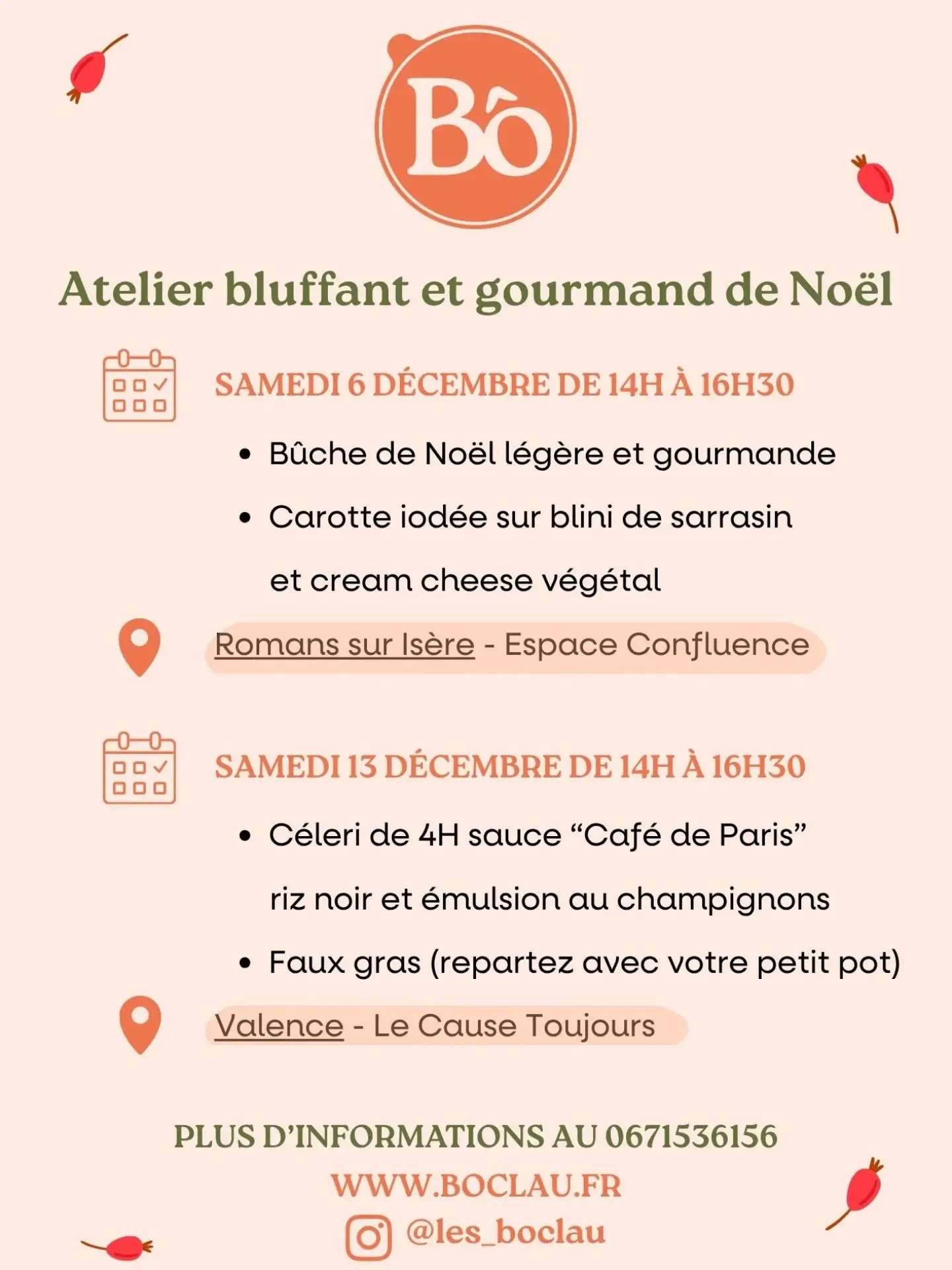 Bô Clau organise un atelier de cuisine à L'espace Confluence pour cette édition 2025 de son Atelier bluffant et gourmand de Noël.
