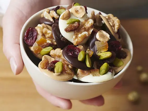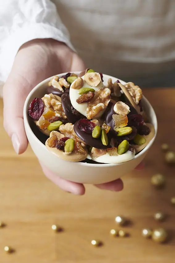 Les classiques mendiants s’invitent à la Cité du Chocolat Valrhona dans une version participative et créative. Fruits secs, écorces d’orange, éclats de fèves de cacao…