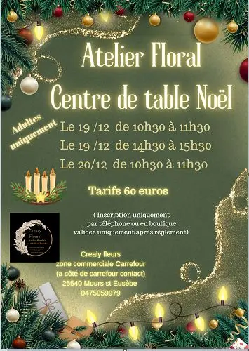 Atelier uniquement pour adultes sur réservation par téléphone ou en boutique validé après règlement