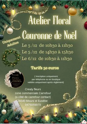 Atelier uniquement pour adultes sur réservation par téléphone ou en boutique validé après règlement