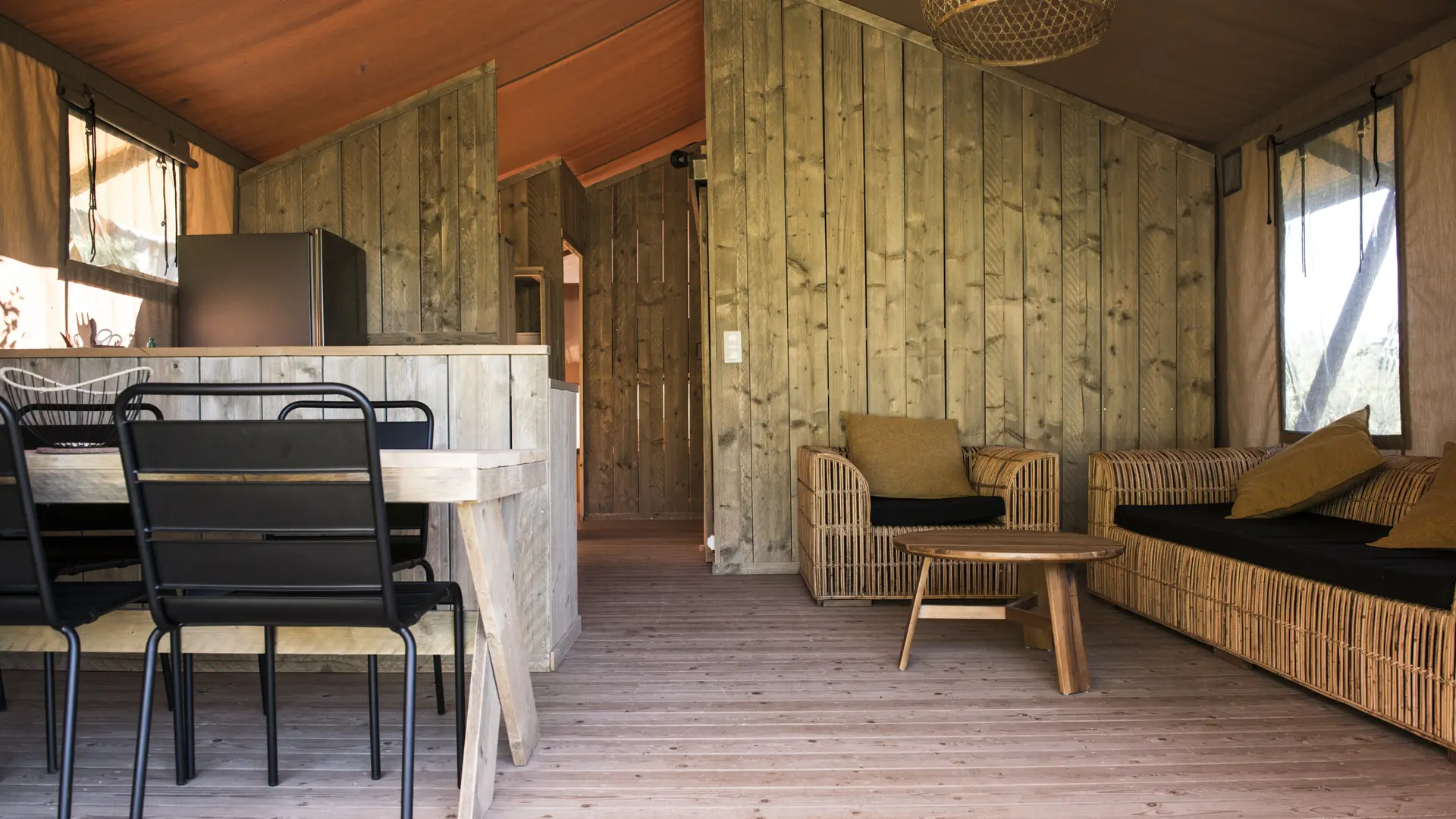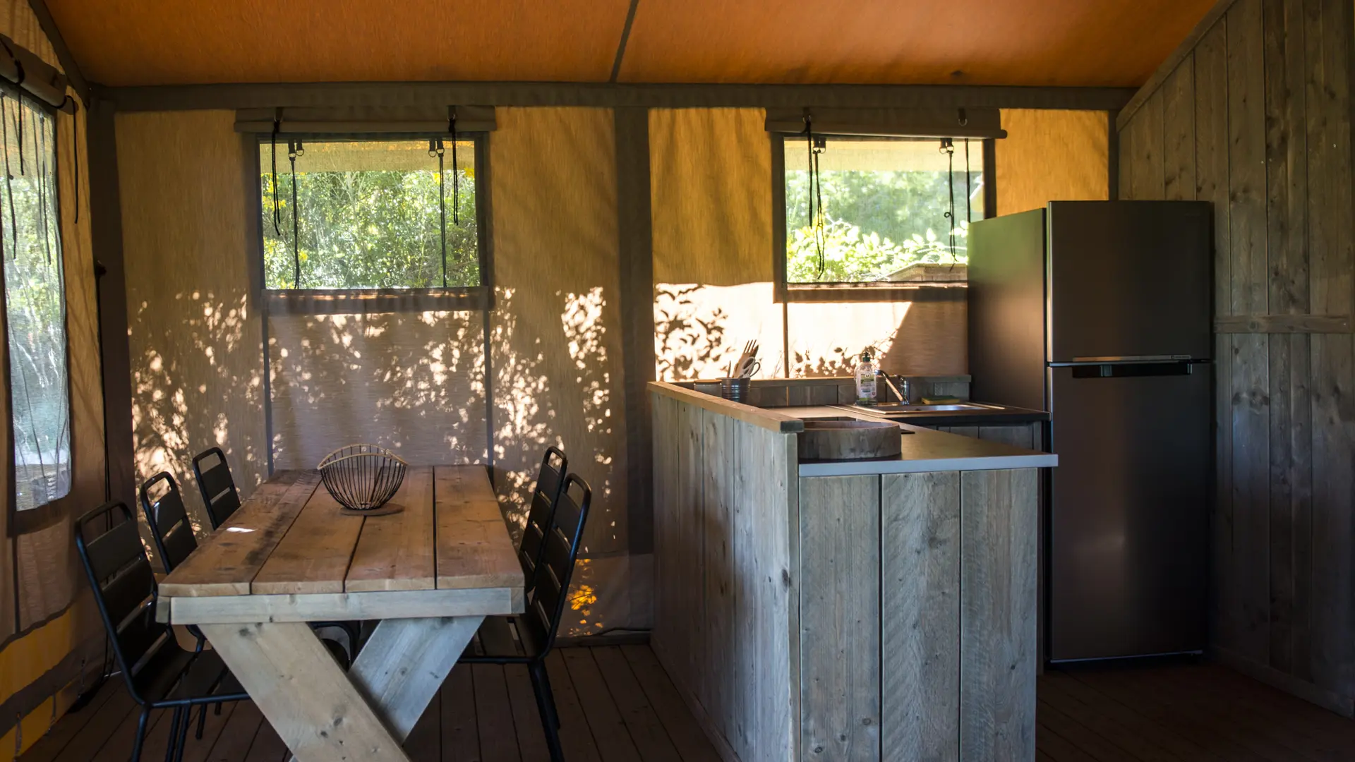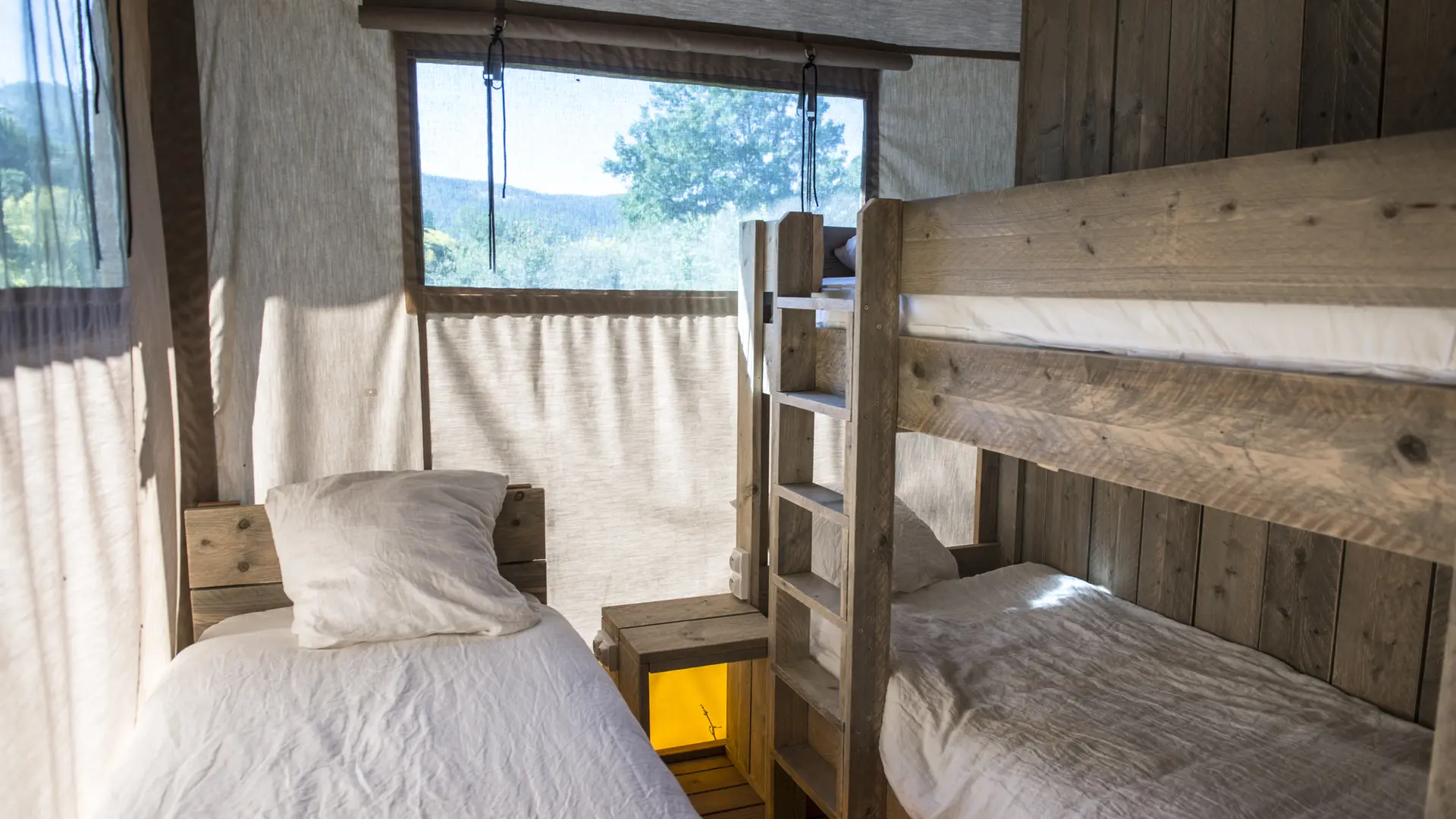 Mi cabanes, mi tentes, nos Lodges sont de véritables espaces de vie pleines de charme, équipés confortablement pour 5 personnes. Chaque détail a été pensé pour vous proposer de vivre l’expérience unique du « glamping ». Une version plus luxe du camping standard.