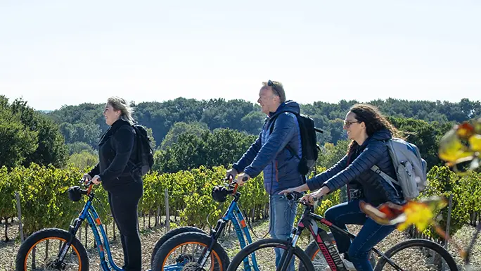 Partez en balade en Vélo électrique découvrir agréablement notre magnifique région. Nous vous proposons 3 circuits différents de 30 à 35 km. Ludiques, ces parcours sont prévus pour tous !!