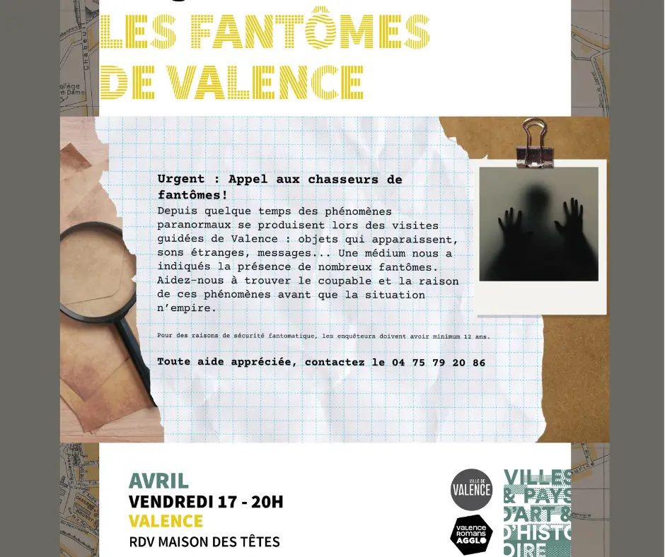 Appel aux chasseurs de fantômes ! Depuis quelque temps des phénomènes paranormaux se produisent lors des visites guidées de Valence : objets qui apparaissent,