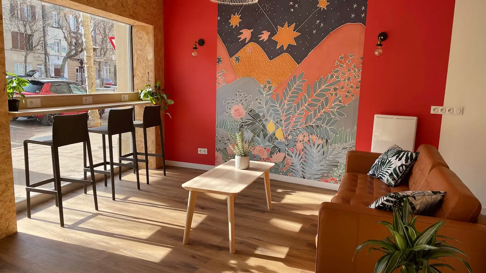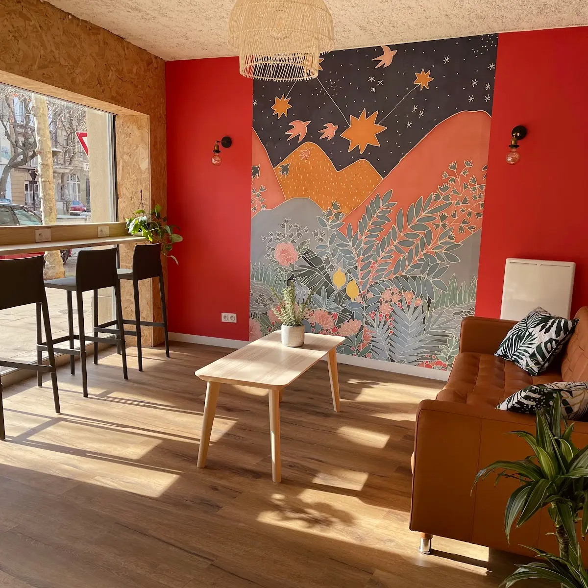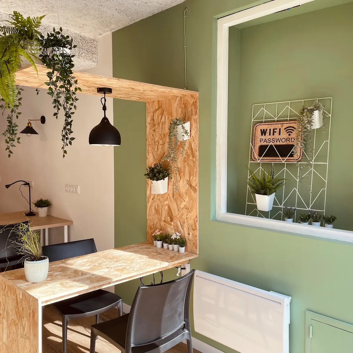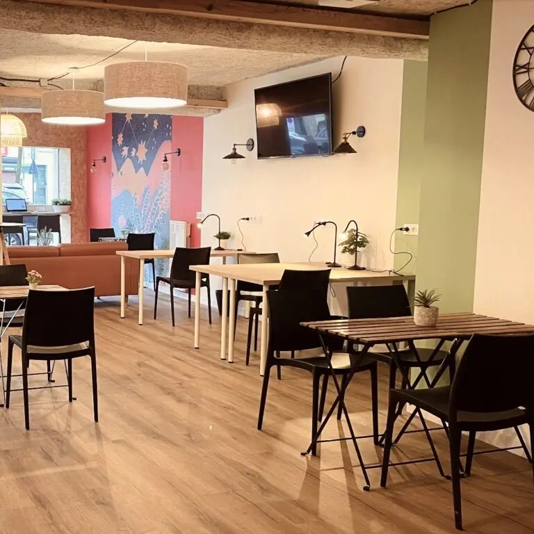 Espace agréablement décoré et lumineux avec un coin détente, une ambiance conviviale, mais surtout une connexion internet de qualité grâce à la fibre optique.