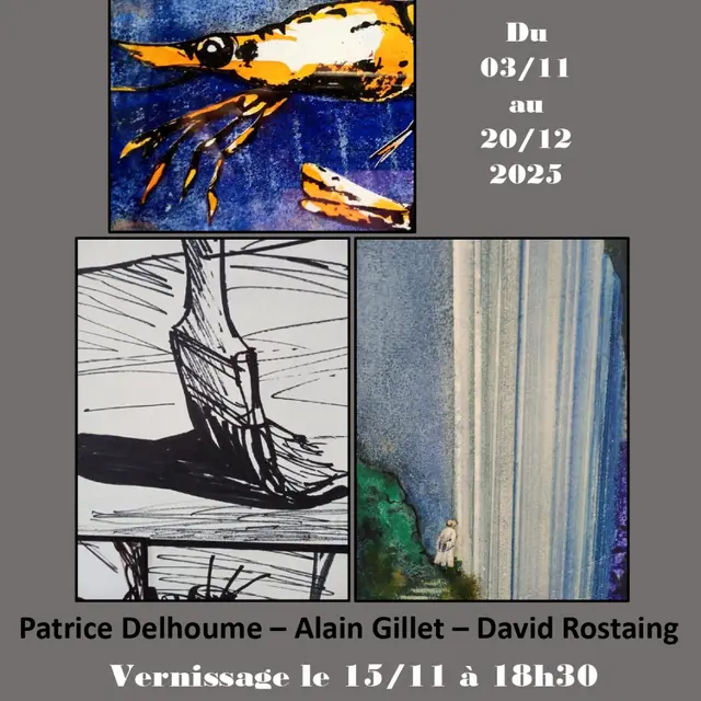 Les 3 artistes : . Patrice Delhoume, Alain Gillet, David Rostaing