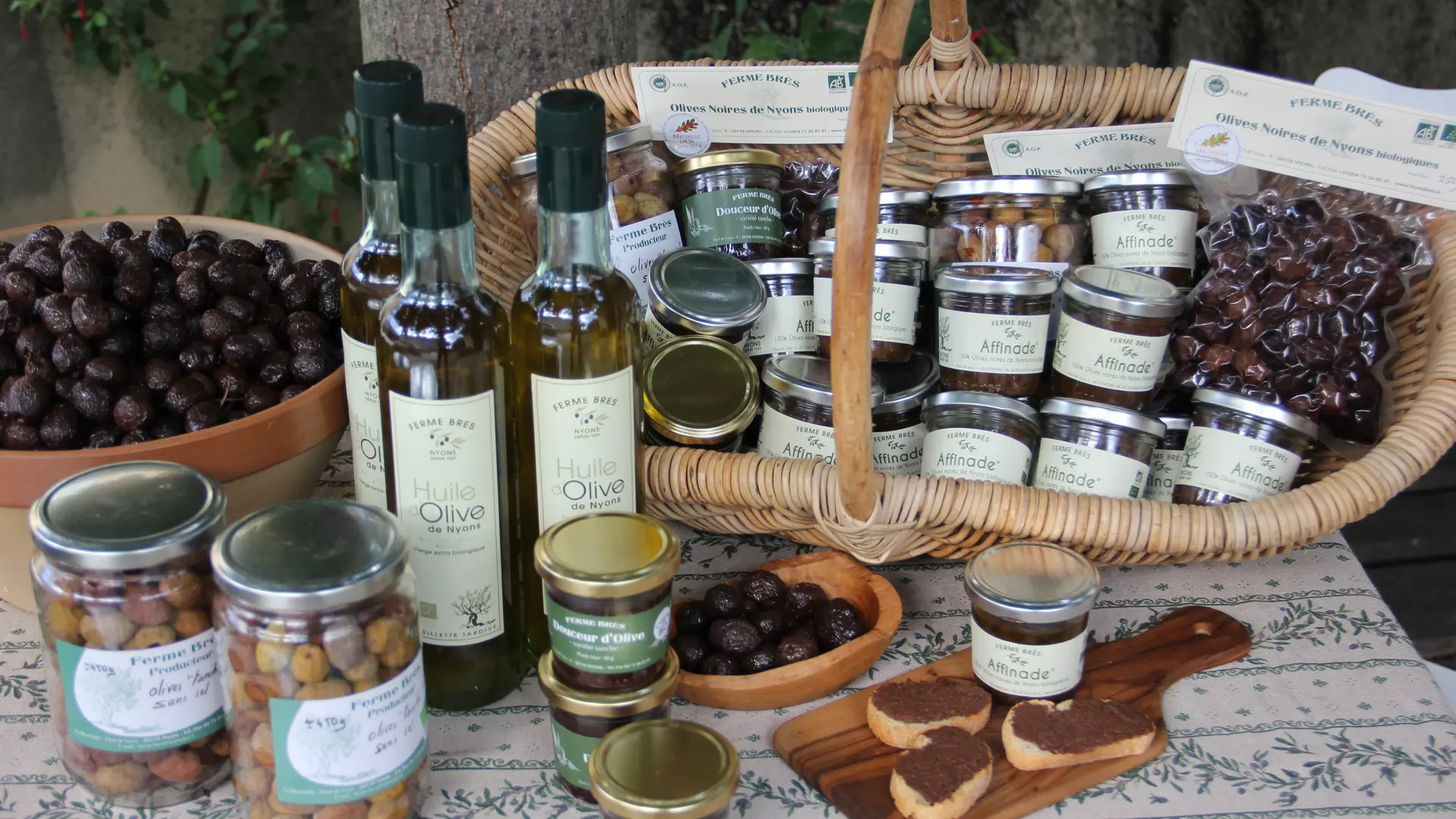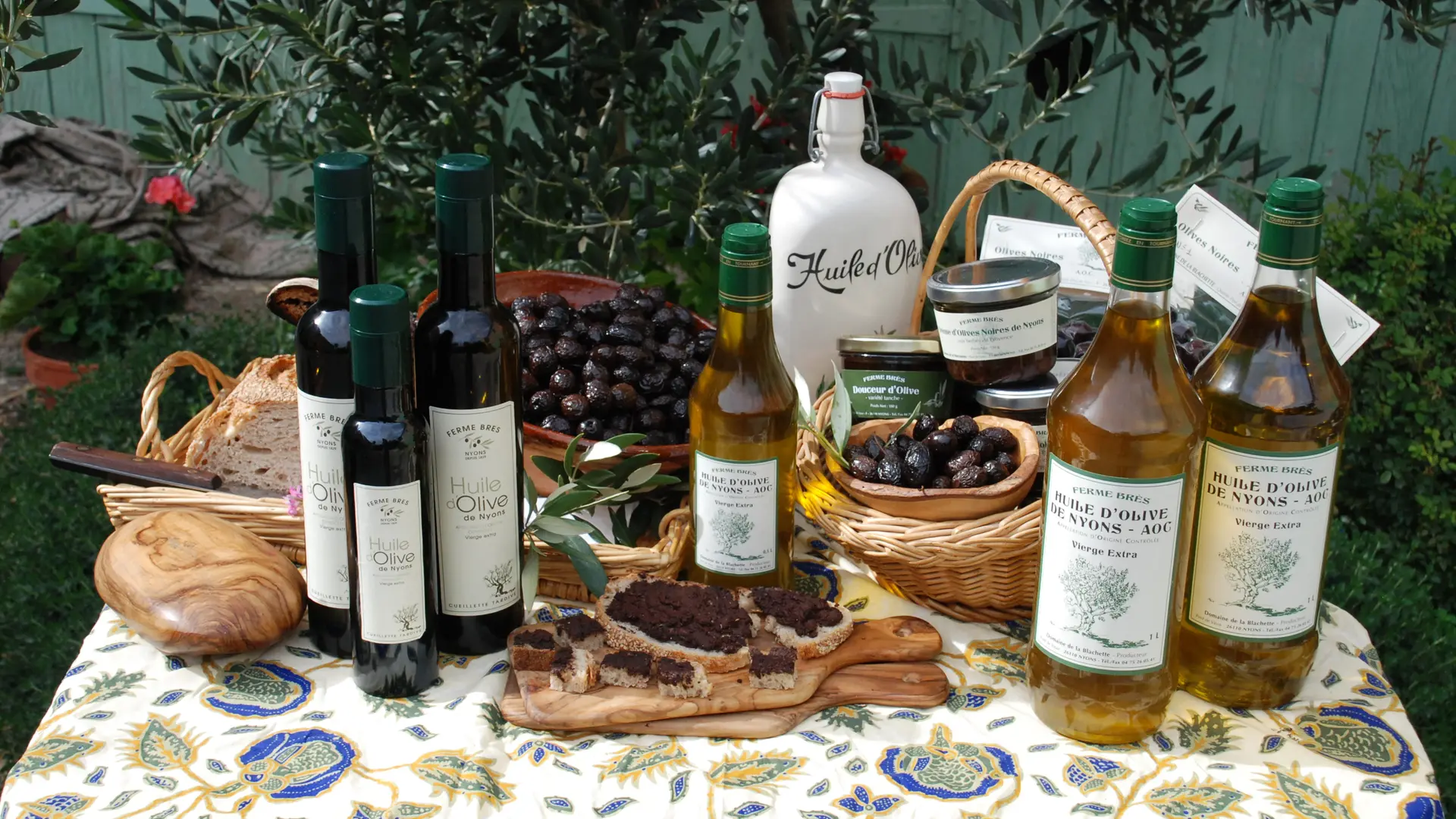 Domaine oléicole familial, en agriculture biologique, terroir d'exception, savoir-faire reconnu (plusieurs fois médaillé). Vente à la ferme des produits AOP Nyons : olives, huile d'olive, Affinade et tapenades diverses, vin Côtes du Rhône.