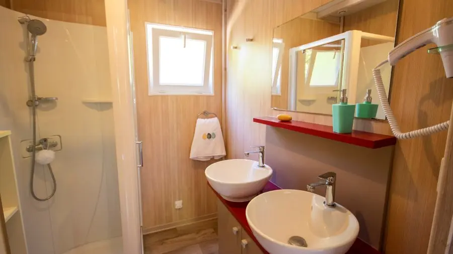 Hébergement en chalets (30 chambres) pouvant accueillir jusqu'à 60 personnes dont 1 hébergement pour personne à mobilité réduite. Chalets situés dans un camping : sur place possibilité de 174 emplacements.