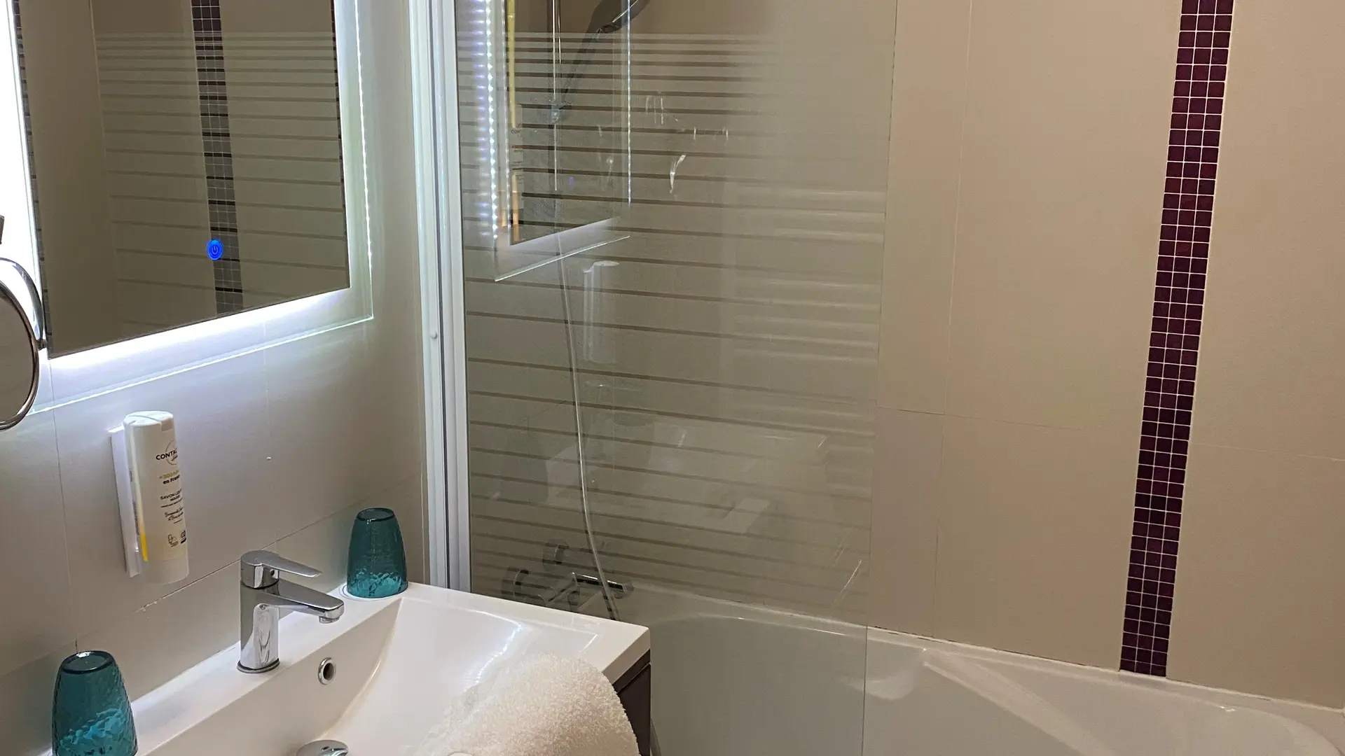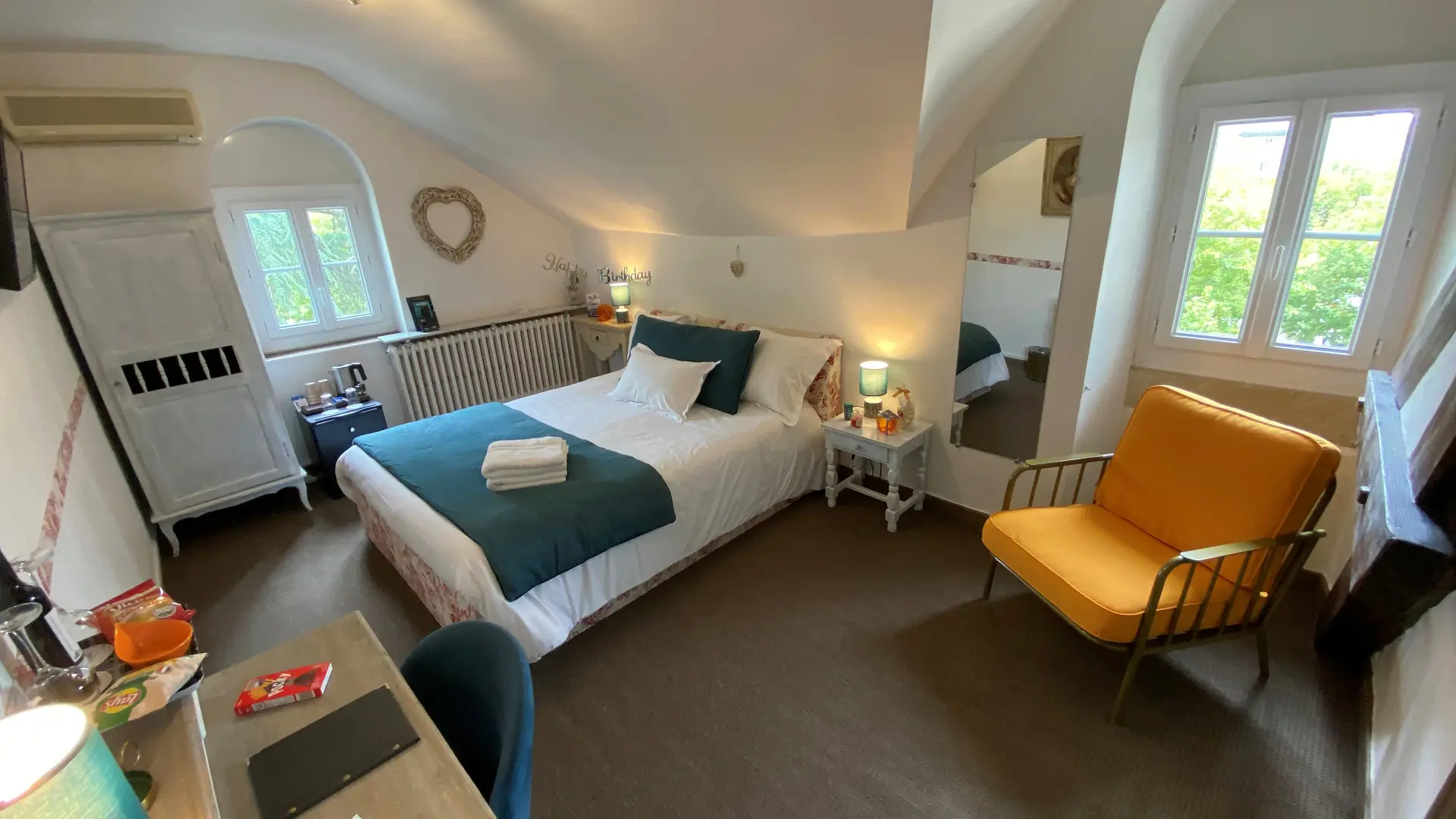 Chambre doubleChambre climatisée avec salle de bain équipé de douche ou de baignoire.