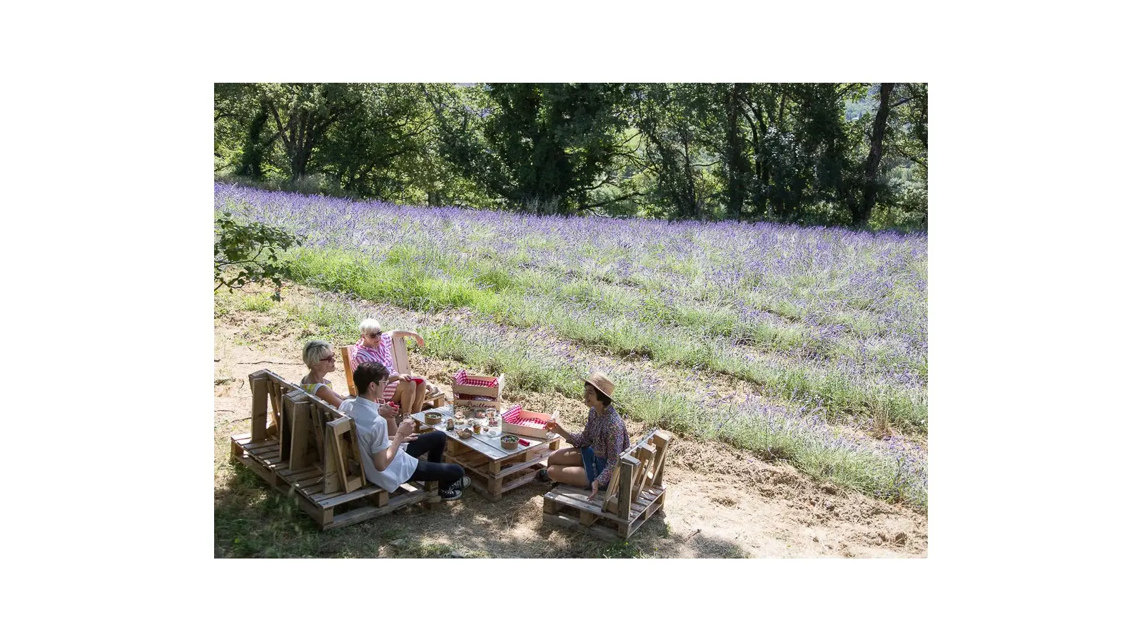 Au déjeuner, panier pique-nique à déguster dans les champs de lavande pour une déconnexion totale.