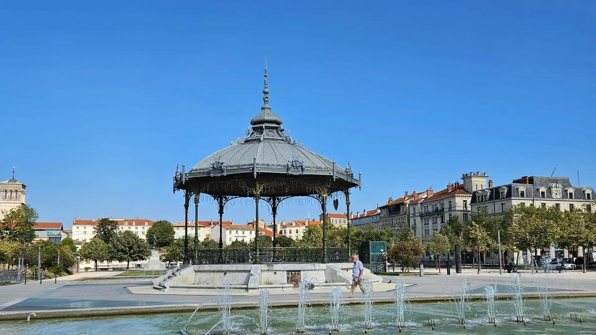 Remplacé en 1890 par le kiosque actuel, conçu par Eugène Poitoux, il doit son nom à l’illustrateur Raymond Peynet, qui, de passage à Valence en 1942, donne naissance à ses fameux "amoureux". Son croquis du kiosque à musique abritant un violoniste et une admiratrice fera le tour du monde. En 1966, en présence de Raymond Peynet, on baptise officiellement le kiosque à musique de Valence, qui est classé monument historique en 1982.