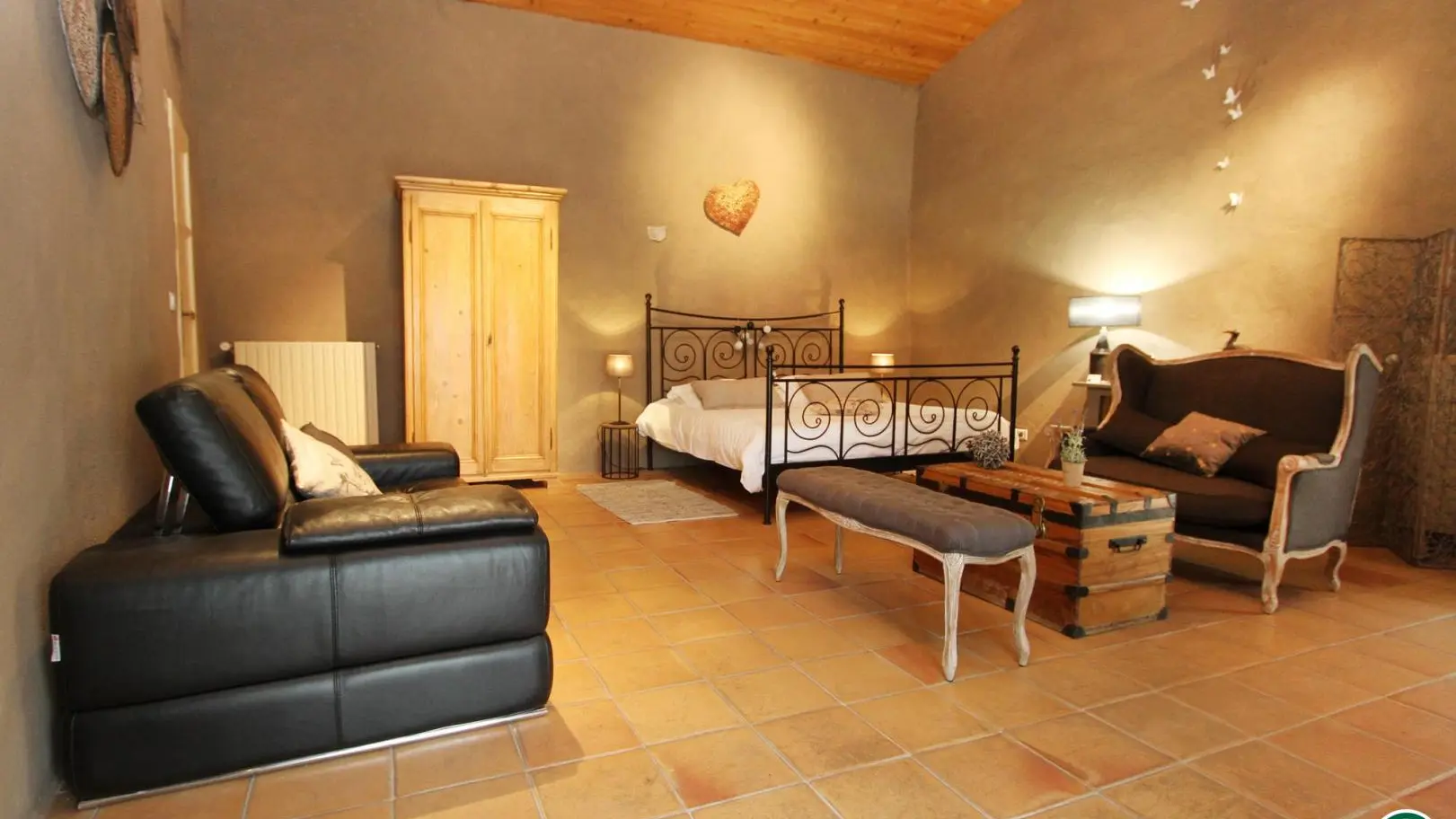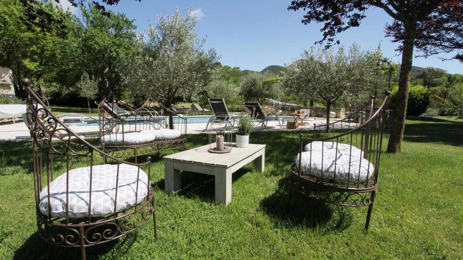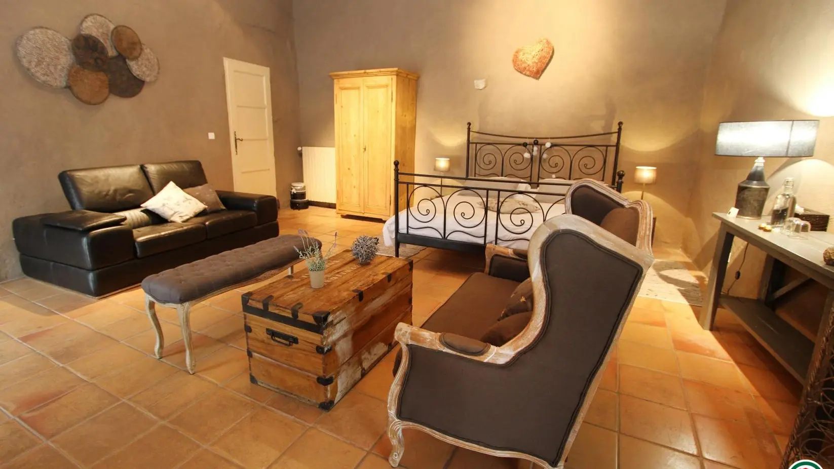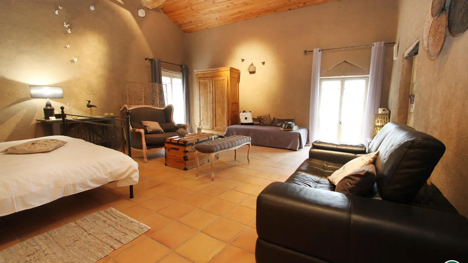 "Le Mas du Père Jean", vieille bâtisse tricentenaire restaurée de main de maître est aujourd’hui un petit coin de paradis au milieu des vignes, lavandes, oliviers et montagnes où les hôtes se sentent comme des"oui coqs en pâte".