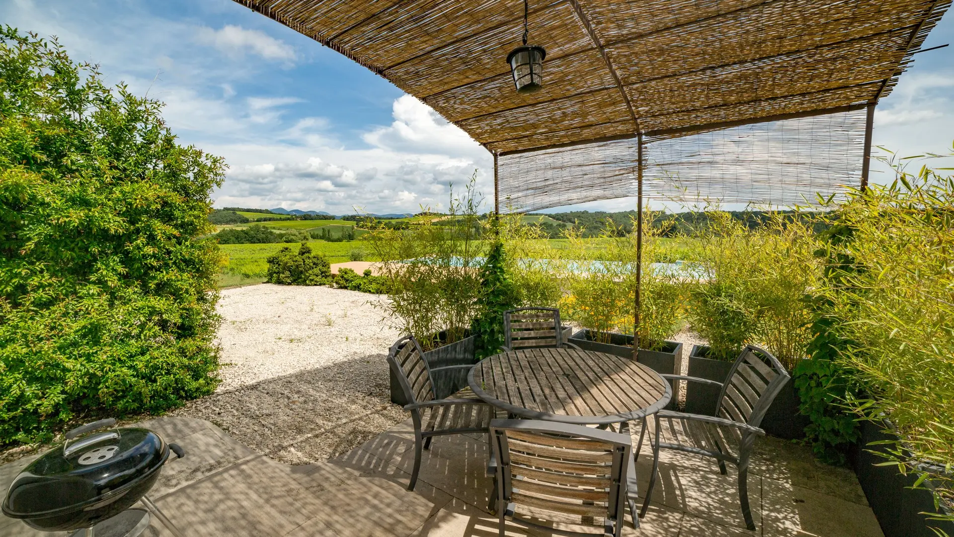 Le Mont Ventoux est situé au sud de la maison principale. Idéal pour une famille, ce gîte, dotée d’une terrasse ombragée, donne sur la piscine, avec le Mont Ventoux en arrière-plan.