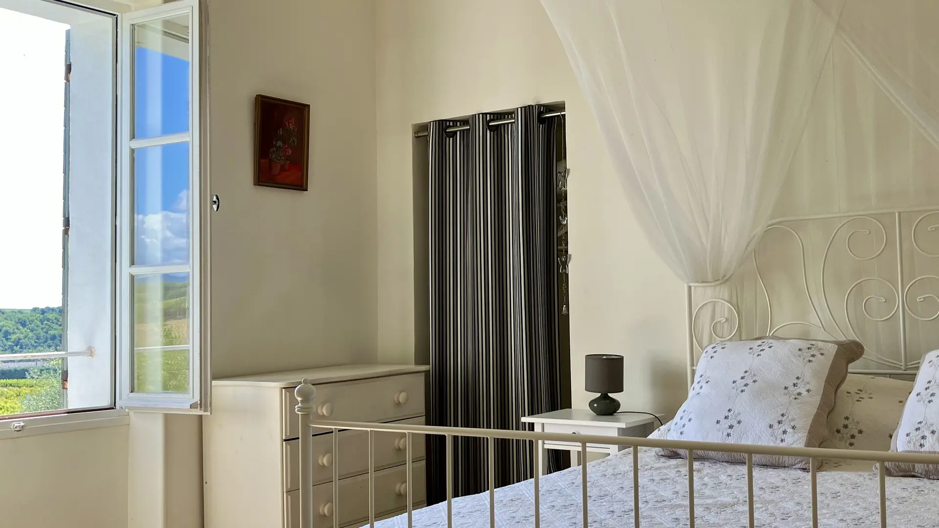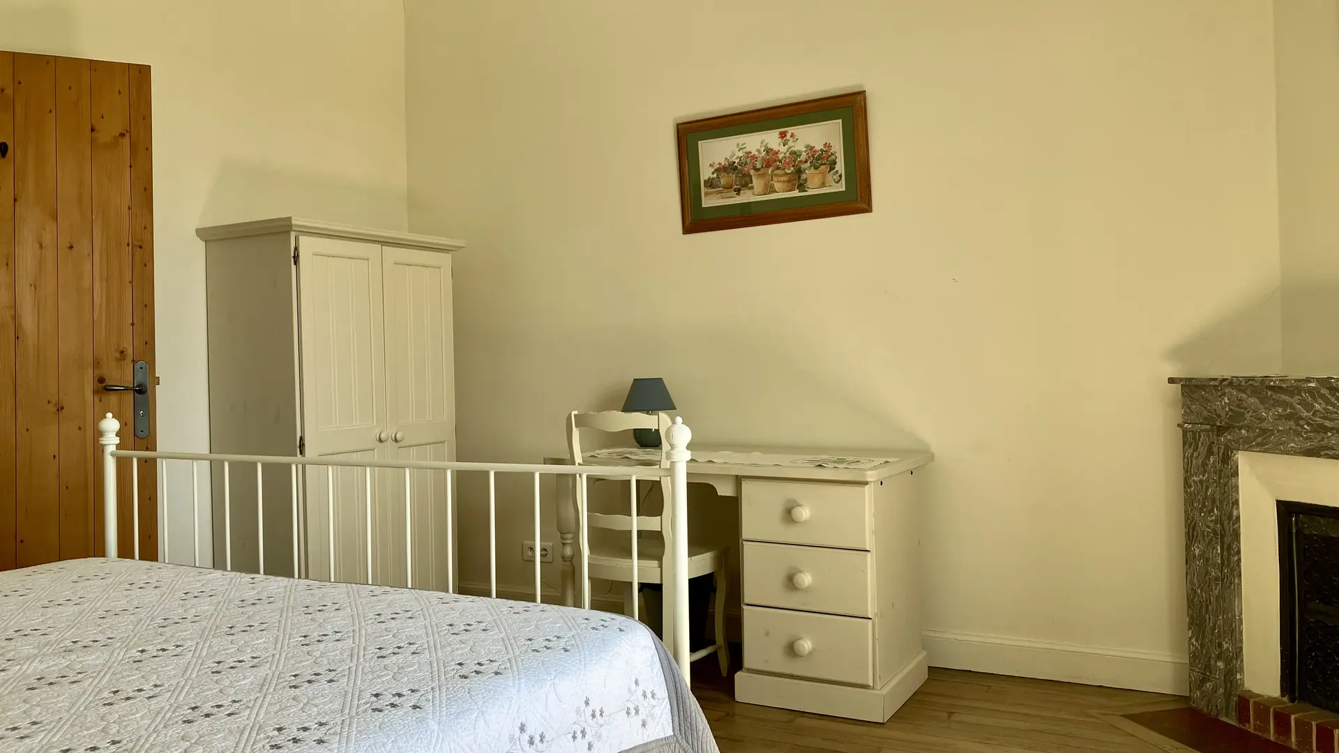 À l’étage se trouve la chambre principale avec un grand lit et fenêtre donnant plein sud sur la piscine avec le Mont Ventoux en arrière-plan. Au même étage se trouve une salle de bain de taille généreuse avec bain, douche séparée, WC et machine à laver. La chambre avec deux lits simples pour enfants est au deuxième étage.