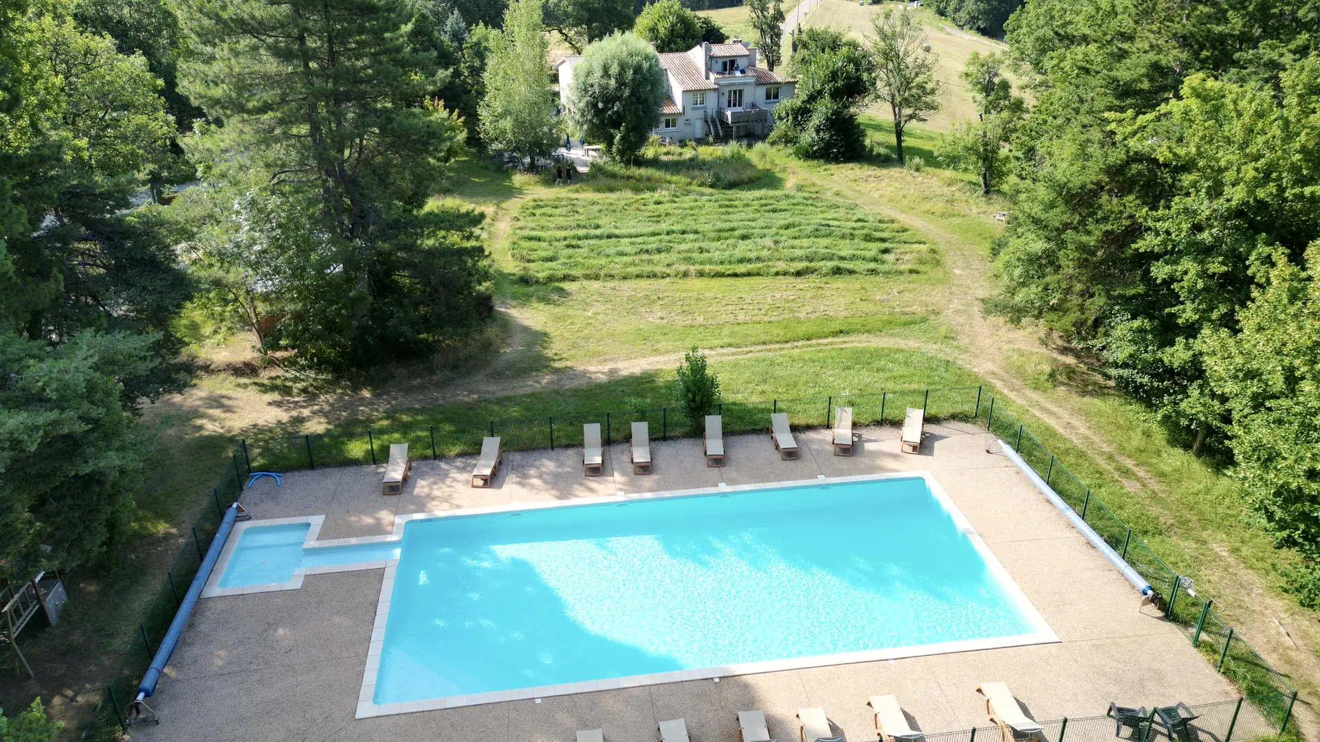 5 chambres aux ambiances personnalisées. Maison familiale dans un domaine boisé, avec jardin et grande piscine.