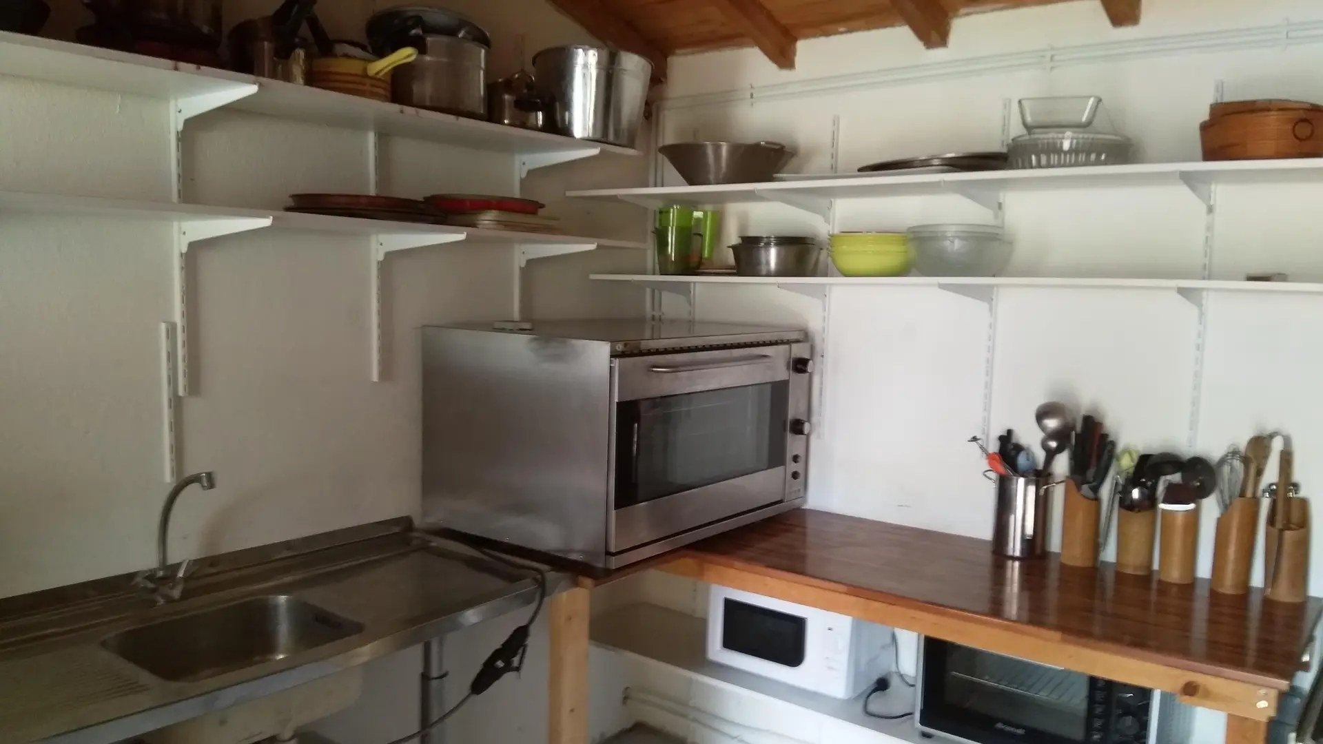ACCES A NOS 2 POLES CUISINE D’ÉTÉ POLE CUISSON POLE PLONGE ▪ 2 Réfrigérateurs domestiques ▪ 1 Congélateur à pains de glace ▪ 1 Cuisinière à Gaz 5 feux 2 X 9 m2 ▪ 1 Four traditionnel rôtissoire petite taille ▪ 1 Four Micro-onde classique ▪ 1 Grand Four rôtissoire ▪ 1 Four réchauffage gratins et pizzas ▪ 2 Lave-vaisselles ménagers ▪ 2 Eviers et égouttoirs ▪ 1 Percolateur à Café 20 Litres ▪ Bouilloire ▪ Vaisselle et couverts pour 90 personnes ▪ Verres à vins + verres à eaux ▪ Ustensiles de cuisson, plats à gâteaux et à tartes ▪ Essoreuse à salade ▪ Grille-pains dans vos logements respectifs ▪ Autre matériel en prêt, possible ▪ Tables et bancs pour 100 personnes (mobilier amovible)