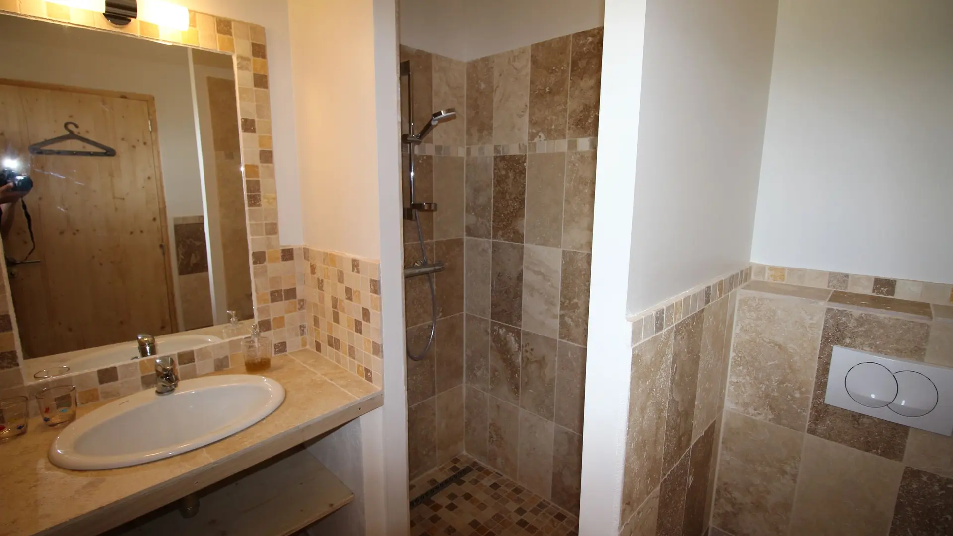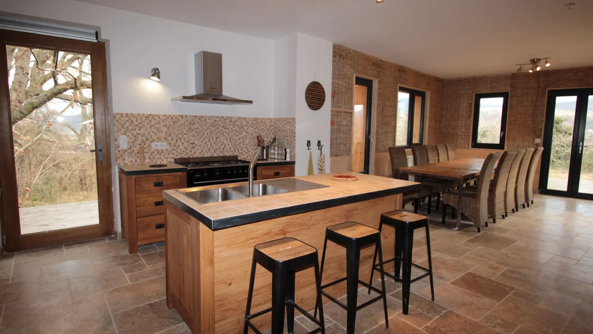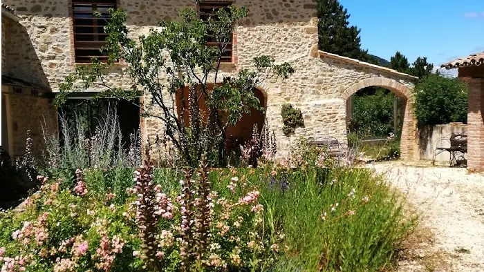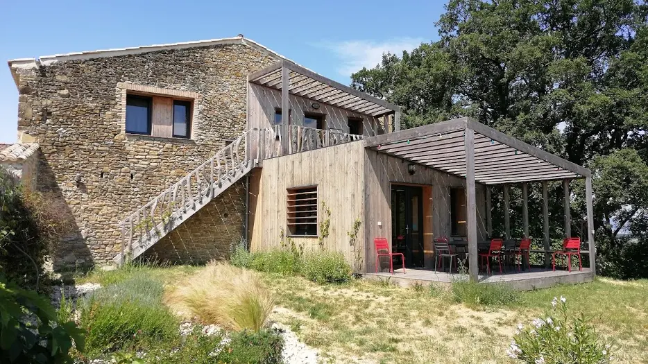 Grand séjour, cuisine ouverte avec îlot central (piano de cuisson 5 feux, grand frigo, congélateur, lave-vaisselle, lave-linge, sèche-linge, produits d'entretien écologiques fournis gratuitement), 4 chambres, 4 salles de bain (douches à l'italienne). Literie grand confort (lits simples ou lits doubles dans toutes les chambres, 10 couchages, draps en coton bio). Accès à la piscine (avec vue panoramique) partagé avec les occupants des 3 chambres d'hôtes et du petit gîte Basilic. Possibilité de louer l'ensemble des hébergements pour une capacité d'accueil totale de 22 personnes, salle de réunion de 70 m2 attenante à la cuisine du gîte Romarin.