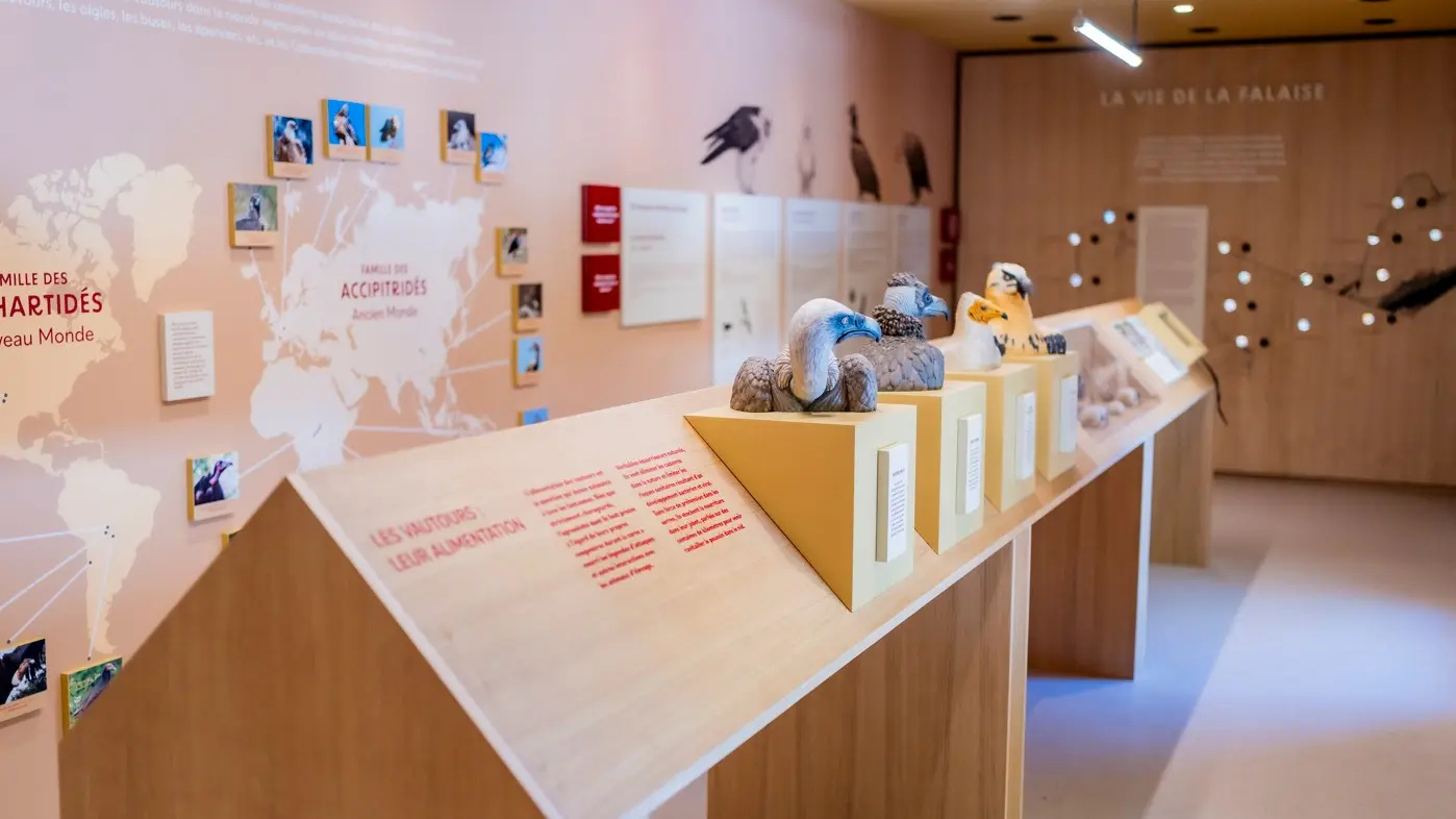 Espace muséographique consacré aux vautours: film, exposition, toit terrasse équipé de télescopes.
