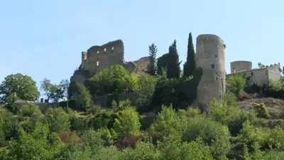 Ses hautes maisons à six ou sept niveaux, soutenues par des contreforts bâtis sur le roc et par de puissantes arcades, s'étagent les unes sur les autres tel un énorme jeu d'orgues et sont dominées par les tours ruinées du château Renaissance des Dupuy-Montbrun.