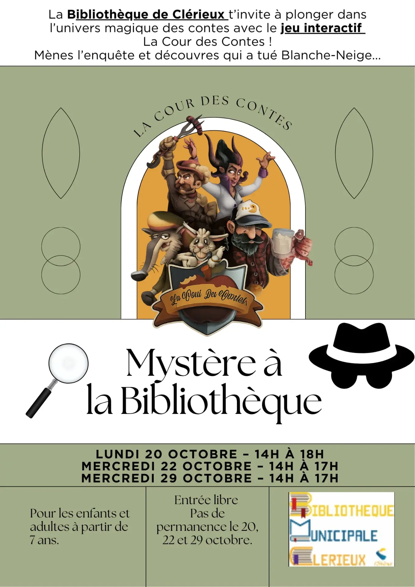 Envie de mener l'enquête ? Viens à la Bibliothèque, avec la Cour des Contes tu vas plonger dans l'univers magique qui renferme bien des mystères. Viens découvrir qui a tué Blanche-Neige.