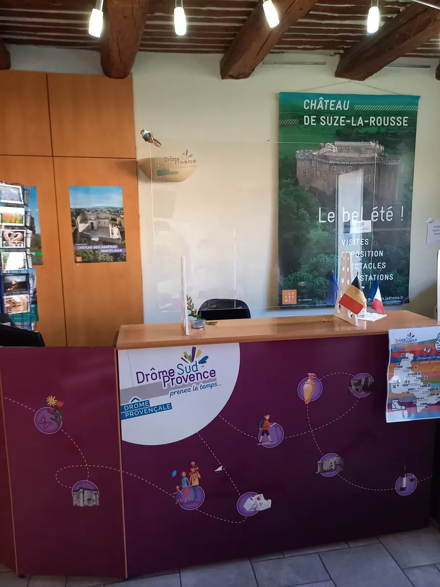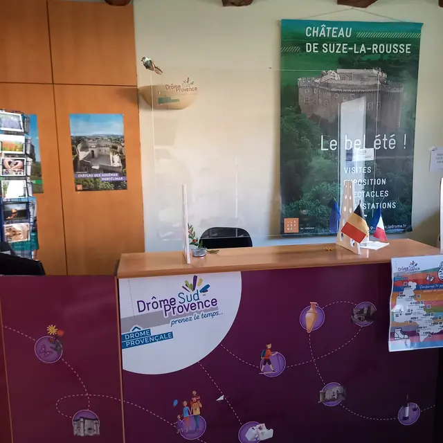 L'origine du nom proviendrait du celtique -UZ- désignant un lieu élevé et -La Rousse- rappellerait soit la chevelure de Marguerite des Baux soit la couleur de la pierre entourant le château. Les princes d'Orange, puis la maison des Baux donnèrent à Suze de grands seigneurs, dont le comte François de la Baume. En 1587, lors d'un combat mortel, il fut blessé, ainsi que sa jument. Il prononça alors cette phrase célèbre :"Allons la grise, allons mourir à Suze!" De Montélimar il se fit transporter à Suze où ils moururent. Depuis 1978, le château abrite l'université du vin. Vous pourrez également profiter du parc boisé "la Garenne" et flâner à travers les ruelles.