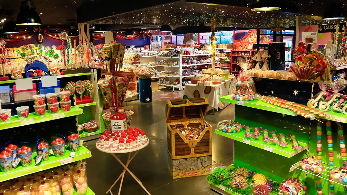 Boutique en accès libre (bonbons, nougat, souvenirs).