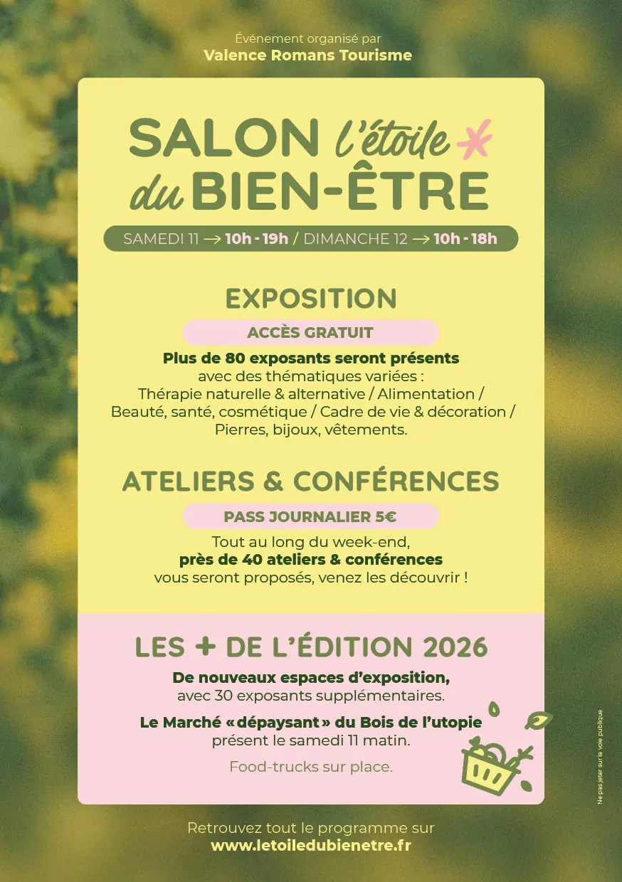 Plus de 80 exposants se rassemblent au salon l’étoile du bien-être à Etoile-sur-Rhône pour vous faire découvrir l’art de vivre autrement et répondre à vos besoins en matière de bien-être, beauté, santé, cadre de vie, alimentation...