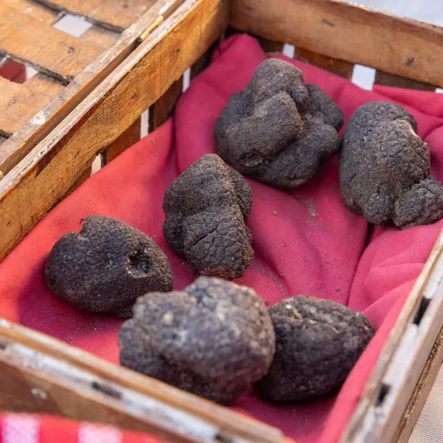 Unique marché de la région où chaque truffe mise à la vente a été préalablement examinée et catégorisée par une commission de contrôle composée d'experts. En outre, tous les trufficulteurs membres de l'association se sont engagés à garantir la provenance et la traçabilité de leurs récoltes.