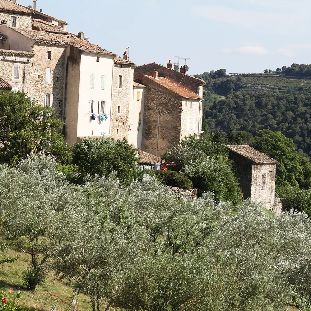 1- A la première intersection, prendre à droite en direction de Nyons. Suivre la première calade à gauche qui remonte en direction de la place principale.