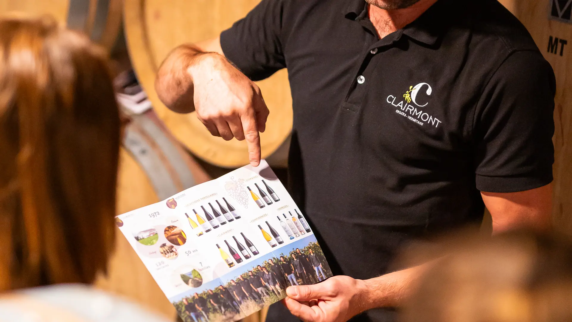 Suivez votre guide à la découverte du voyage de la grappe à la bouteille suivie d’une dégustation de six cuvées.